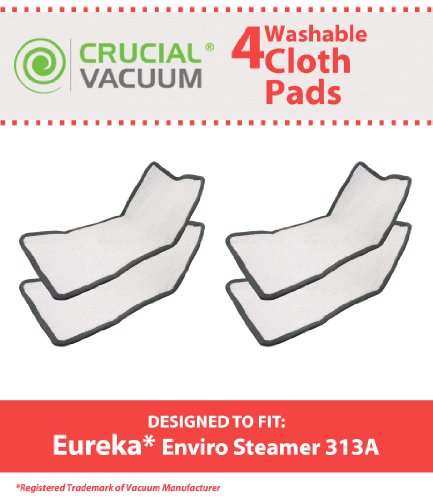 High Quality 4-Pack Washable & Reusable Pad Fits Eureka Enviro Floor Steamer 310A, 311A, 313A. Compare To Eureka Enviro Hard Floor Steam Cleaner Part # 60978, 60980, 60980A. Quick & Easy to use. Designed & Engineered in the USA By Crucial Vacuum. Absolutely Essential For Allergy Sufferers!